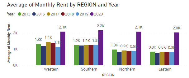 Changes in average house rent in the year 2019-2020 in total and region-wise.