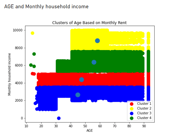 I have used the clustering method to find the age vs monthly rent. I used Python code in Power BI to get this diagram. A sample code is uploaded below.