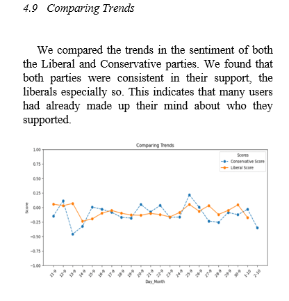 Finally, I compared trends to identify the sentiment of Canadians regarding political parties over time.